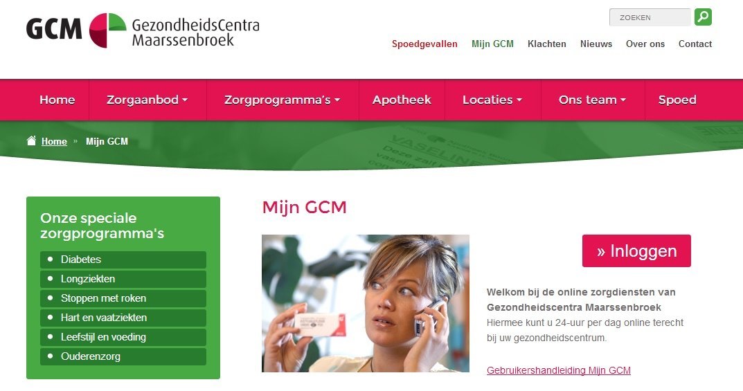 ‘Welkom bij de online zorgdiensten van Gezondheidscentra Maarssenbroek. Hiermee kunt u 24-uur per dag online terecht bij uw gezondheidscentrum’, prijkt er op de website van de Stichting GezondheidsCentra Maarssenbroek. Mijn GCM is een patiënten portaal, één digitale voordeur om bij alle eerstelijns zorgaanbieders binnen het centrum terecht te kunnen.