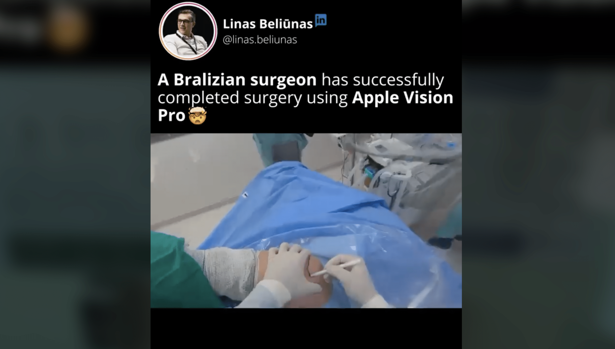 De Braziliaanse chirurg Bruno Gobbato deelde online een video over het gebruik van de Apple Vision Pro tijdens een eerdere operatie die hij had uitgevoerd, met name een schouderarthroscopieprocedure.